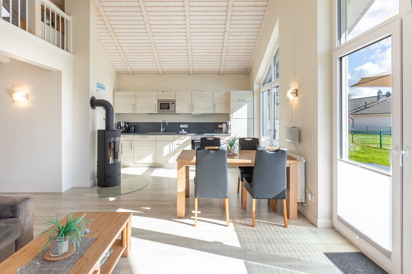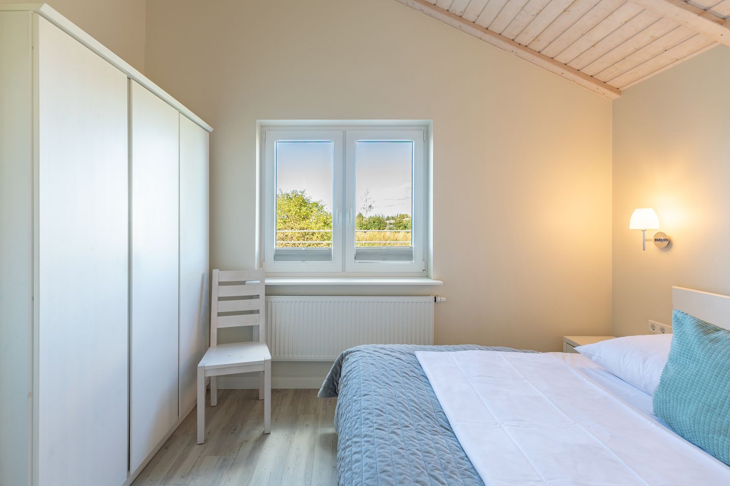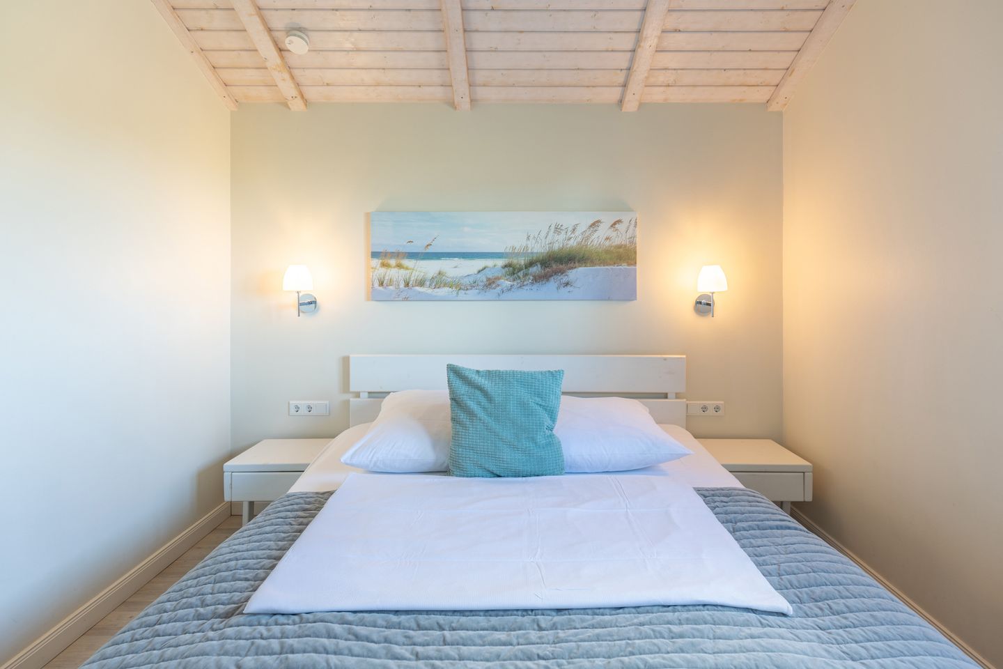 Das 80 m² große Ferienhaus besticht durch seinen modernen, exklusiven Einrichtungsstil im skandinavischen Charme. Zwei Schlafzimmer mit jeweils einem komfortablen Doppelbett (180 x 200 cm) bieten Platz für bis zu vier Personen.