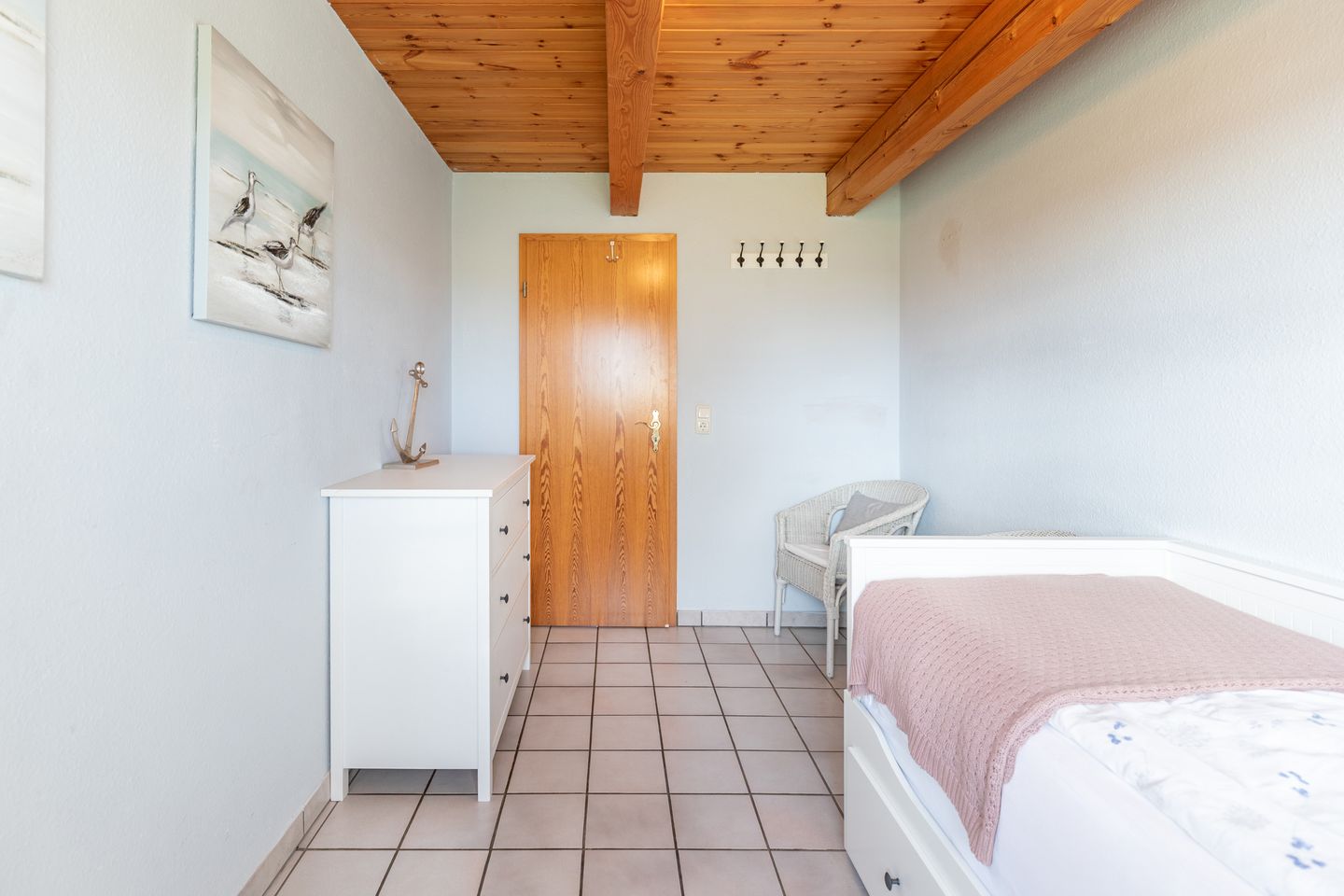 In dem zweiten Schlafzimmer der Unterkunft befindet sich ein Etagenbett (je 90x200) - ideal für Kinder! In diesem Schlafzimmer stellt eine Kommode weiteren Stauraum dar.