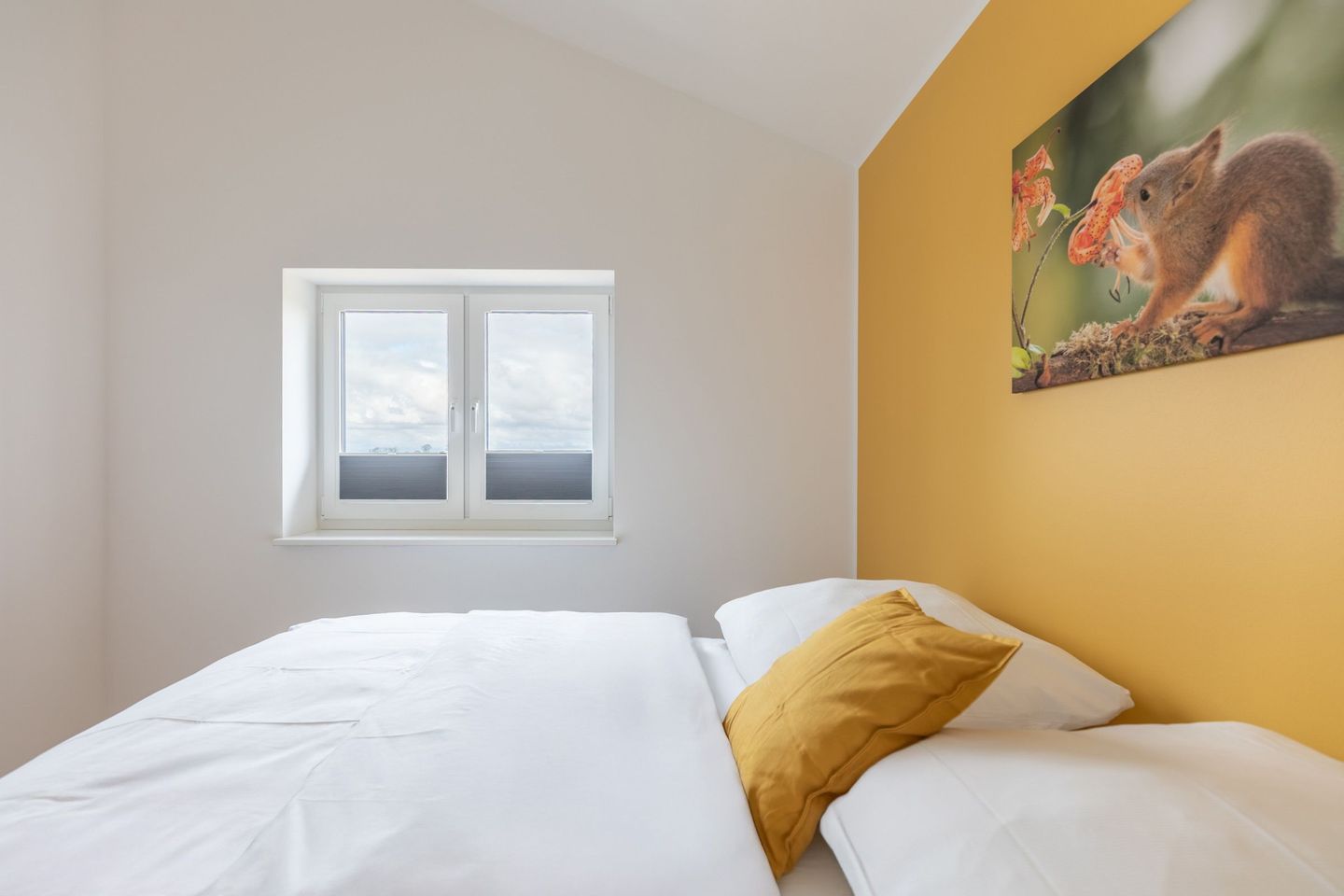 Das freistehende Ferienhaus bietet auf 60 m² Platz für bis zu 4 Personen und ist ideal für Familien und Gruppen. Es verfügt über insgesamt 3 Zimmer, darunter ein Schlafzimmer mit einem bequemen Boxspring-Doppelbett (180x200). Das zweite Schlafzimmer ist mit zwei Einzelbetten (je 90x200) ausgestattet. Beide Schlafzimmer verfügen über Kleiderschränke.