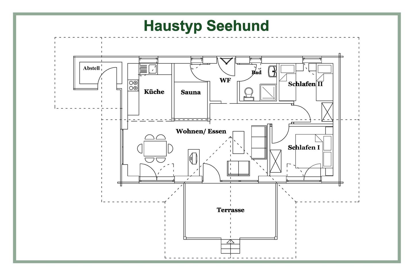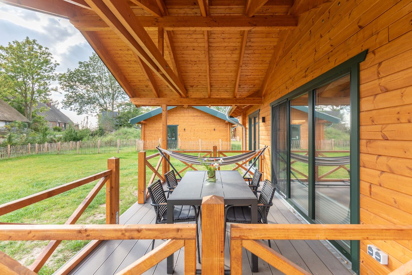 Gartenmöbel, ein Kugel-Holzkohlegrill, ein Strandkorb und ein Windschutz laden zu entspannten Stunden auf der Terrasse ein. Für Wellnessliebhaber steht eine eigene Sauna zur Verfügung – ideal, um nach einem aktiven Tag zur Ruhe zu kommen.