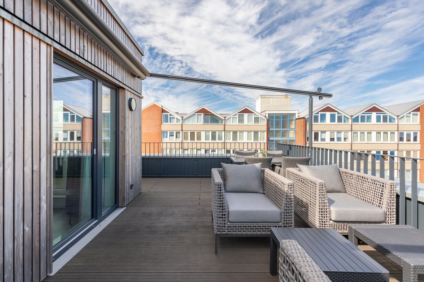 Ein besonderes Highlight ist die großzügige Dachterrasse mit bequemen Gartenmöbeln. Hier können Sie entspannen, die frische Nordseeluft genießen und den unverbauten Blick auf das Meer schweifen lassen. Die gesamte Wohnung ist mit einer Fußbodenheizung ausgestattet, sodass Sie sich auch in den kühleren Monaten rundum wohlfühlen. Alle Fenster sind zudem mit Sichtschutz versehen.