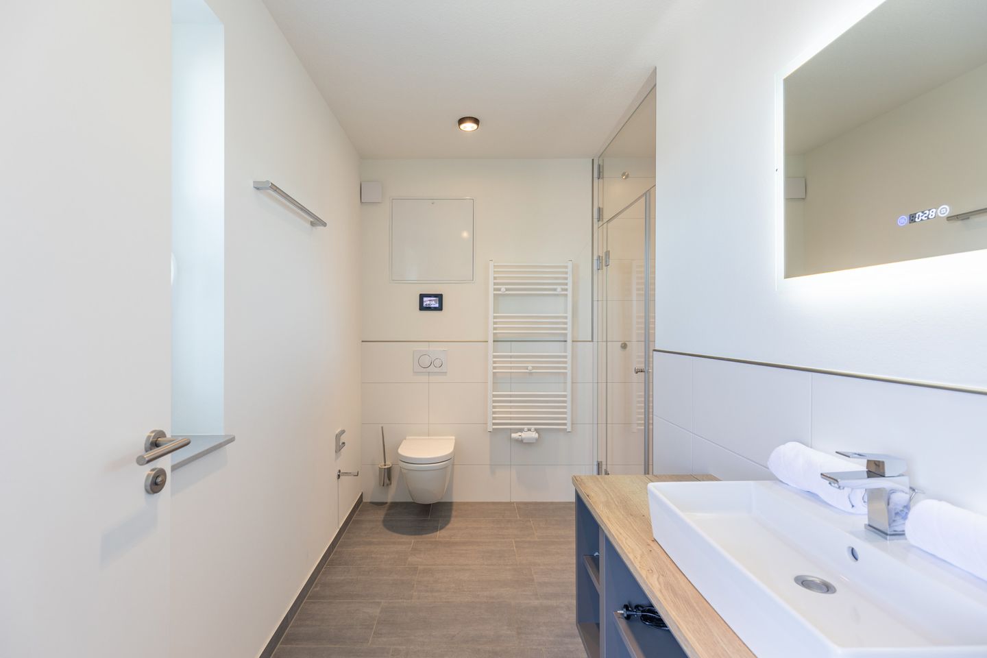 Das Apartmenthaus ist im Frühjahr 2023 fertiggestellt worden. Es liegt direkt am Kurzentrum, hinter dem Deich.
