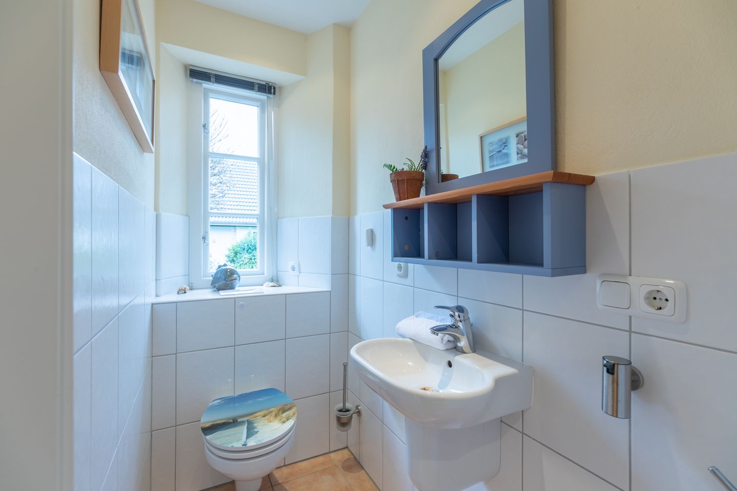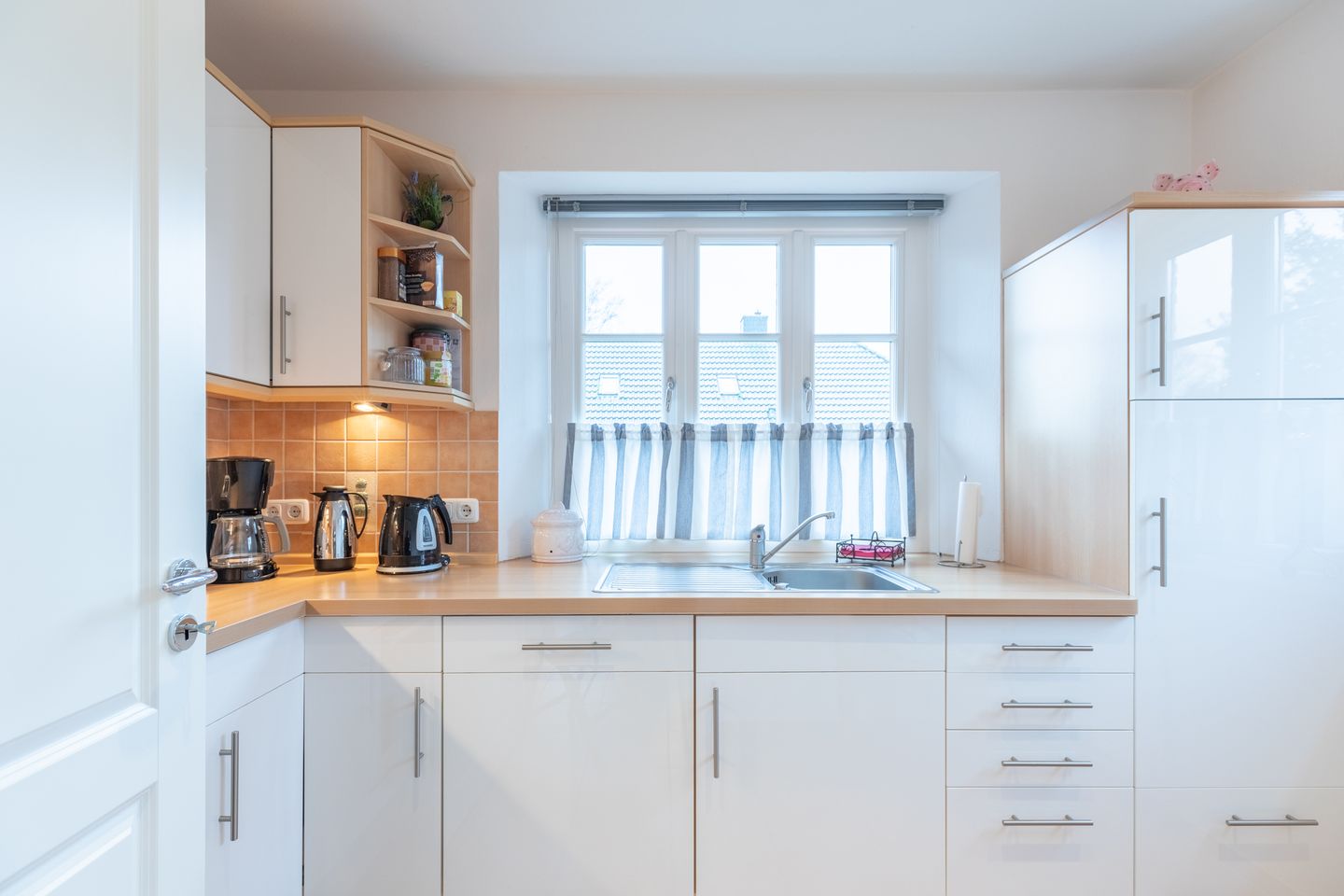 Das Ferienhaus ist im hellen Landhausstil eingerichtet und begeistert durch seinen schönen Wohnraum mit Sofaecke vor dem Kaminofen, großem Flachbild-TV (Sat), dem geselligen Essbereich. Die separate Küche ist umfangreich mit Herd, Backofen, Kühlschrank, Geschirrspülmaschine, Kaffeemaschine (Filtergröße 4), Wasserkocher, Toaster, ausreichend Geschirr und Kochutensilien ausgestattet. Im Erdgeschoss steht Ihnen außerdem ein Gäste-WC und ein Hauswirtschaftsraum mit Waschmaschine zur Verfügung.