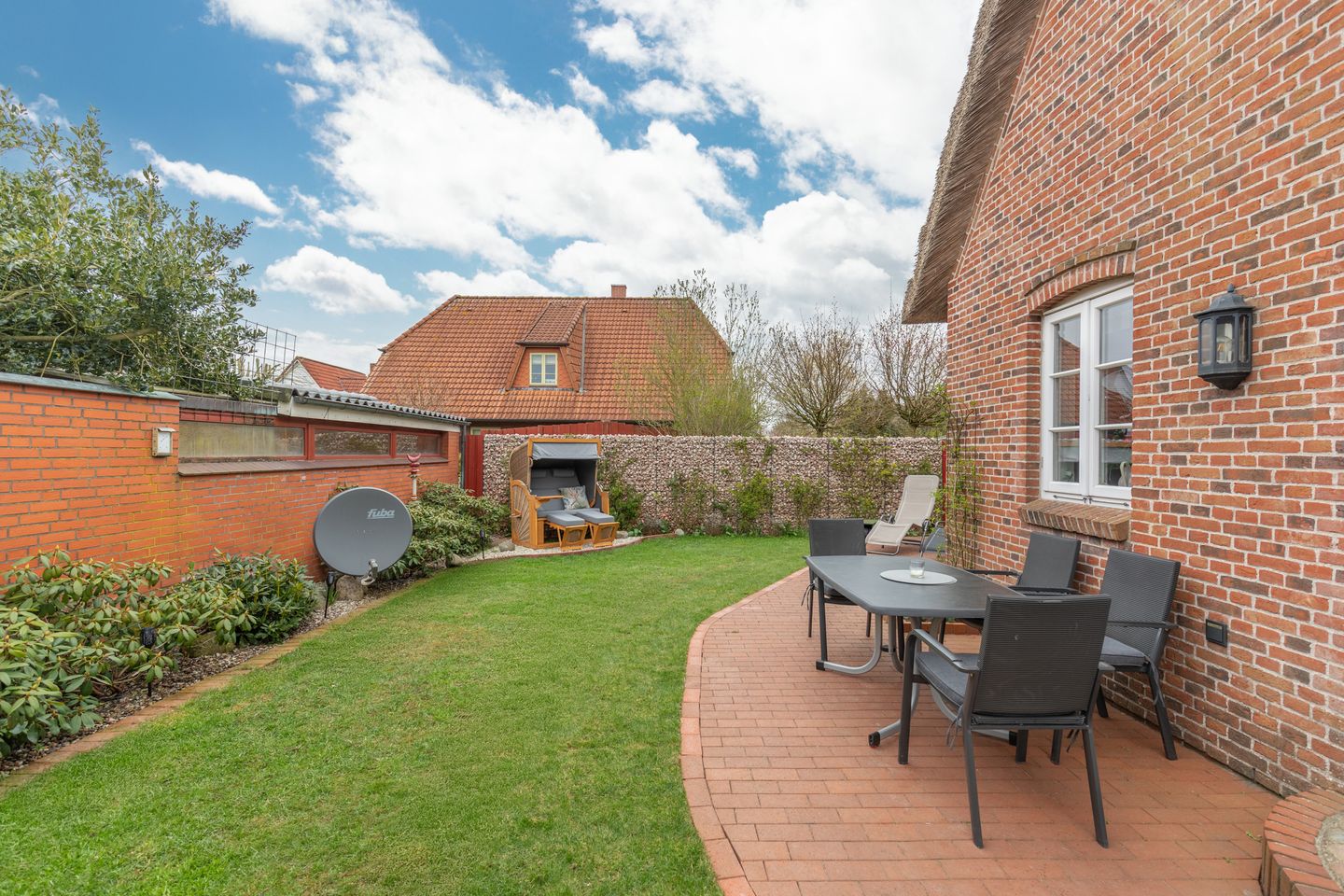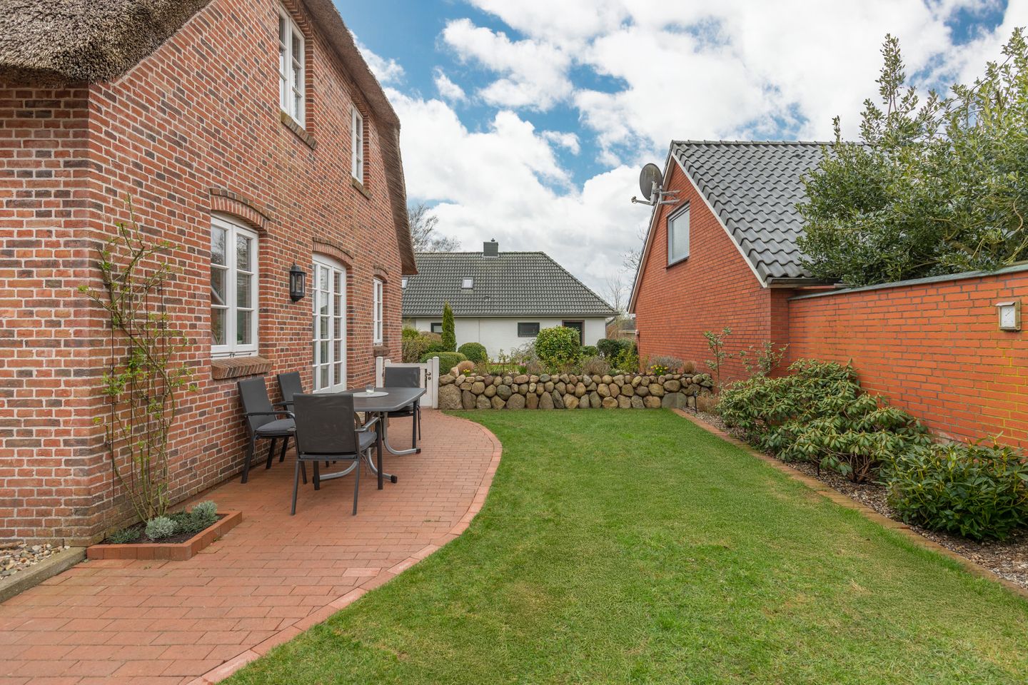Ruhige Lage: genießen Sie in unserem schönen Ferienhaus im Landhausstil das Ambiente unter Reet. Das Rosenhuus bietet Platz für bis zu vier Personen.
