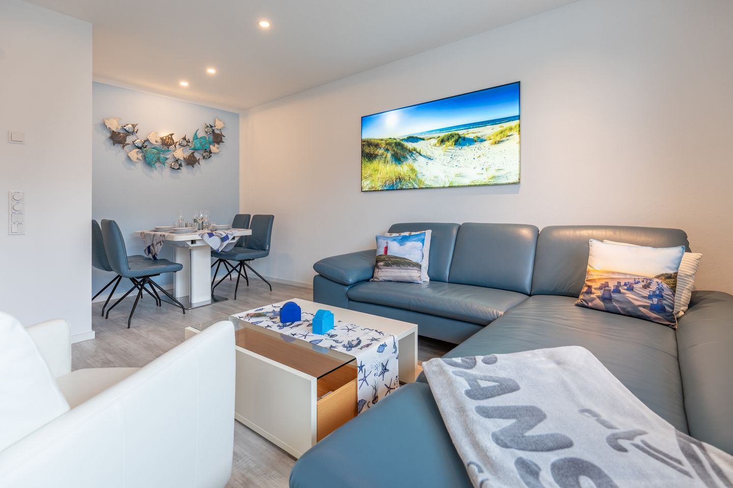 Das Reihenhaus bietet auf 75 qm modernen Komfort auf zwei Etagen und kombiniert stilvolles Ambiente mit einer gehobenen Ausstattung. Zwei gemütliche Schlafzimmer mit jeweils einem Doppelbett und TV schaffen den idealen Rückzugsort für Familien oder Paare, die Wert auf Privatsphäre und einen hochwertigen Wohnstandard legen.