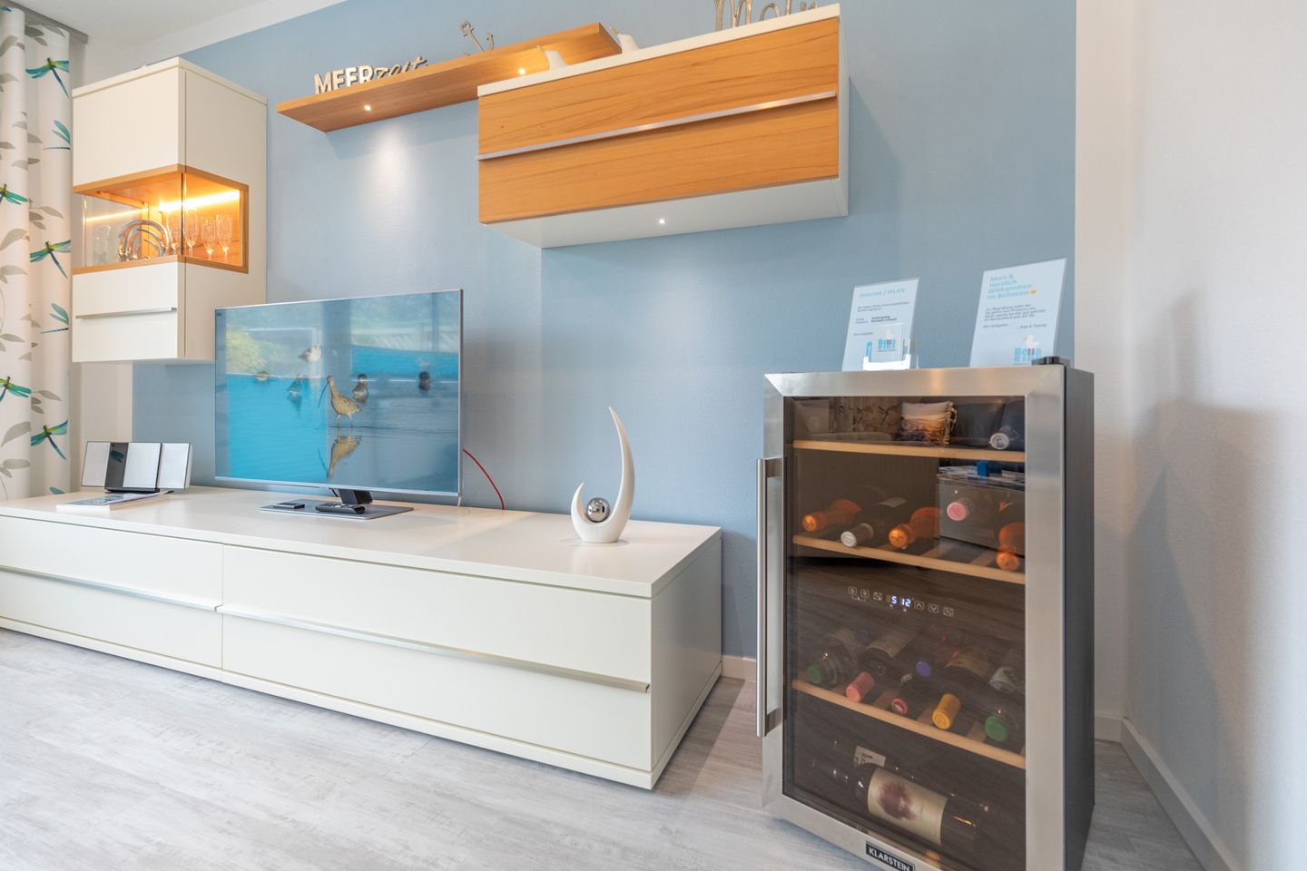 Im Wohnbereich erwartet Sie eine einladende Atmosphäre mit einem komfortablen Sofa, Sessel und einem SAT-Fernseher und Magenta, die es jedem Gast ermöglichen, individuelle Medienwünsche zu erfüllen. Ergänzt wird die Unterhaltung durch eine HiFi-Anlage, Radio, CD-Spieler, eine kleine Auswahl an Musik und Gesellschaftsspielen, sodass auch bei weniger gutem Wetter abwechslungsreiche Stunden garantiert sind.