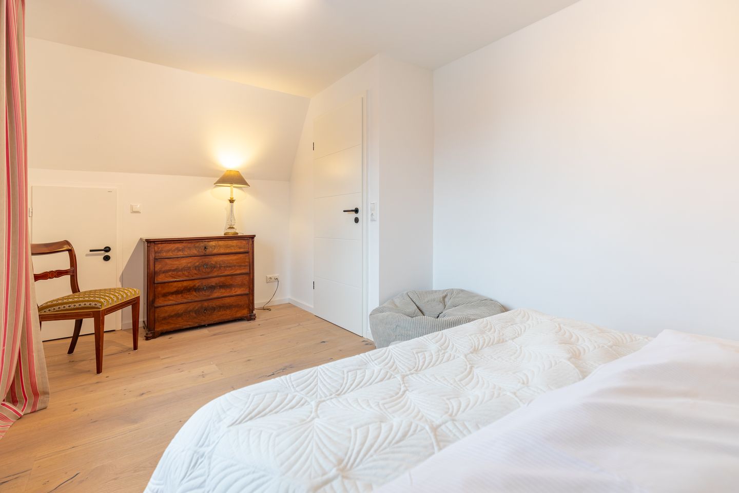 - ein Schlafzimmer mit kleinem Boxspringbett (1,40 × 2,00 m)