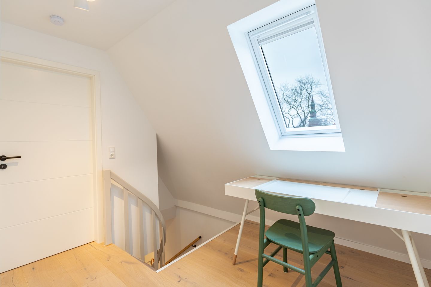 Im oberen Bereich finden Sie einen Schreibtisch – ideal für alle, die auch im Urlaub gelegentlich arbeiten möchten – sowie zwei weitere Schlafzimmer: