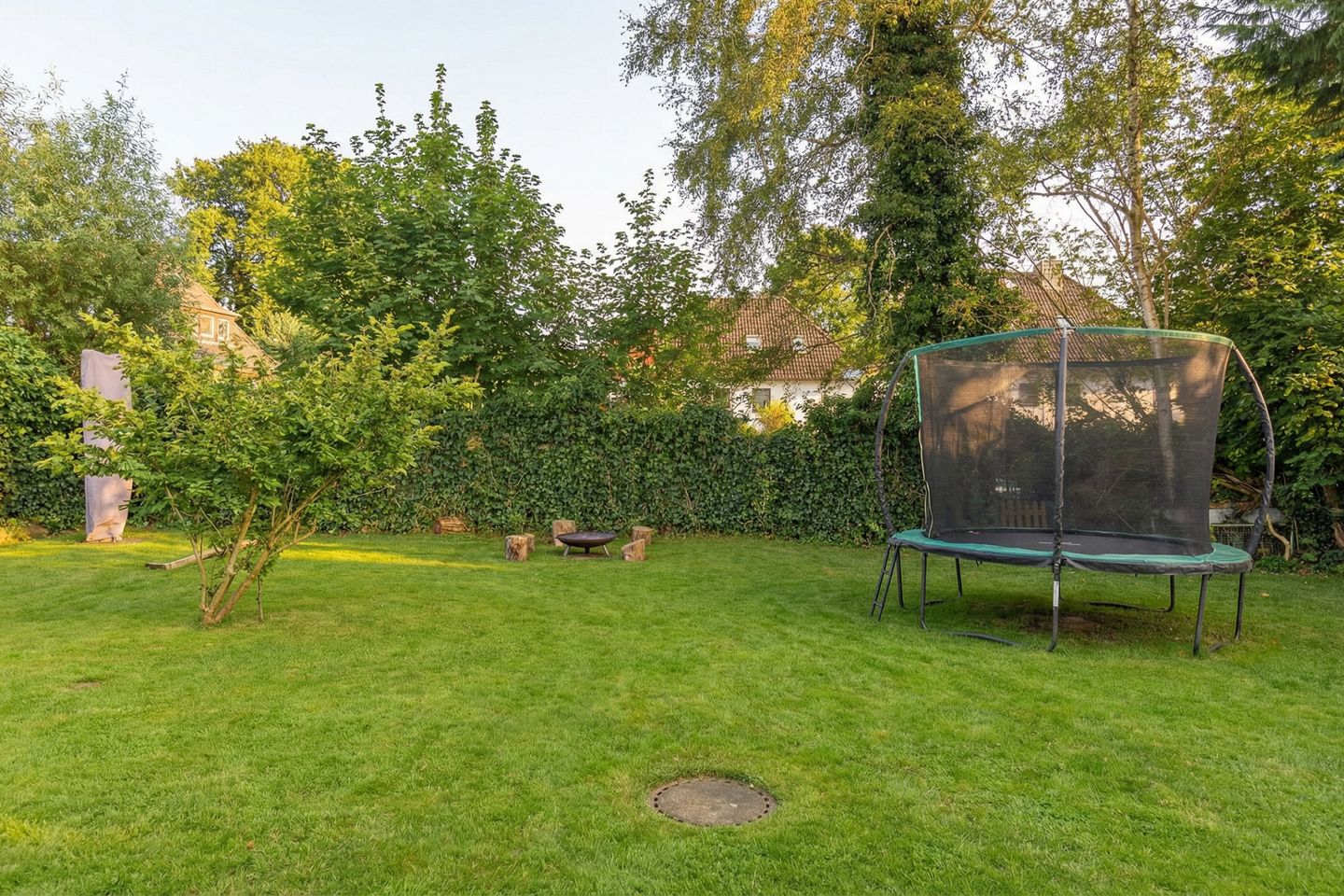 Das großzügige Grundstück bietet Raum für Erholung im Freien.