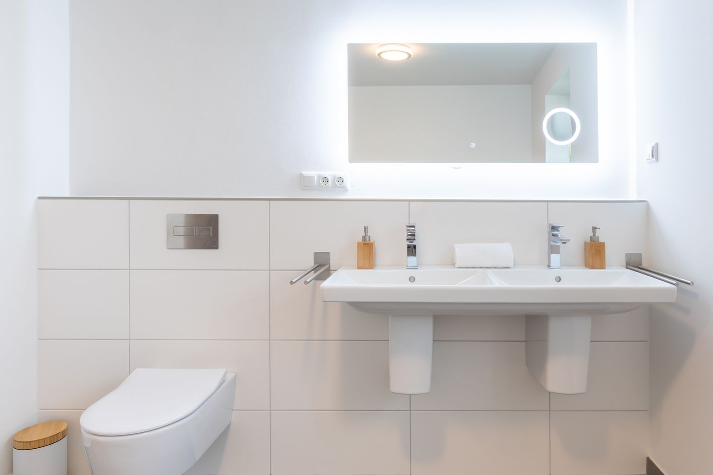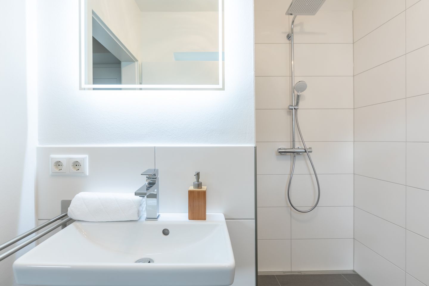 Ein Highlight ist das großzügige Badezimmer mit ebenerdiger Dusche und WC.